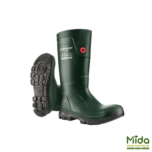 Las botas Purofort TerraPRO de Dunlop son un tipo de calzado impermeable ideal para llevar a cabo trabajos agrícolas y del campo. Este tipo de botas proporcionan comodidad, protección y amarre para completar las labores más exigentes en agricultura. Este complemento es 100% poliuretano (Purofort), ligero y flexible para mantener los pies secos hasta el final de la jornada laboral.La suela profesional de grado SRC antideslizante está diseñada para garantizar un gran amarre sobre cualquier tipo de terreno, repele la suciedad y ofrece un control máximo al caminar.Tiene capacidad de aislamiento térmico contra el frío de -20ºC o -4 ºF. Resiste a los impactos, golpes y cortes, a la abrasión, el aceite y el fueloil.