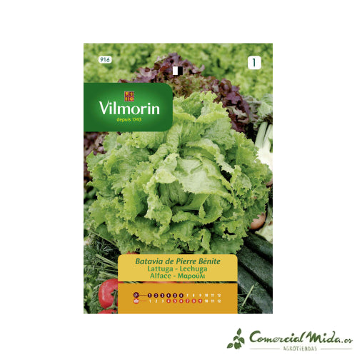Il Semi di lattuga Pierre Benite de Vilmorin sono alcuni semi per la coltivazione di questa varietà di Batavia di primo ciclo e di produzione veloce . È un tipo di lattuga resistente al calore, anche se è consigliato acqua spesso la pianta per evitare che il fiore si alzi e prolungare così il periodo di raccolta. Produce foglie voluminose e ricci . Si consuma la batavia di Pierre Bénite insalate anche se si può anche fare in umido o alla griglia .