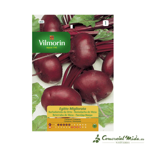 Questo tipo di barbabietola da tavola si caratterizza per essere una varietà molto precoce, di pezzatura media e appiattita, offre un ottimo sapore e la sua polpa è scura e fine. Questa varietà di fiori di barbabietola cresce molto e si mantiene molto bene durante i periodi freddi, soprattutto in inverno. Annaffiandolo frequentemente fa acquisire più volume al frutto e impedisce che alzi il fiore. Nelle stagioni secche, la barbabietola Egitto Migliorata resiste alla siccità grazie alla sua tessitura imbottita che le permette di mantenere un buon livello di umidità. Di solito si semina in inverno-primavera e si raccoglie durante l'estate-autunno e di solito cresce meglio in luoghi dove la temperatura ambiente è di 10ºC.