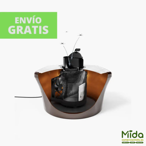 Trampa para exteriores destinada al monitoreo y captura continua de mosquitos (incluido Aedes albopictus – mosquito tigre), ideal para patios y jardines.