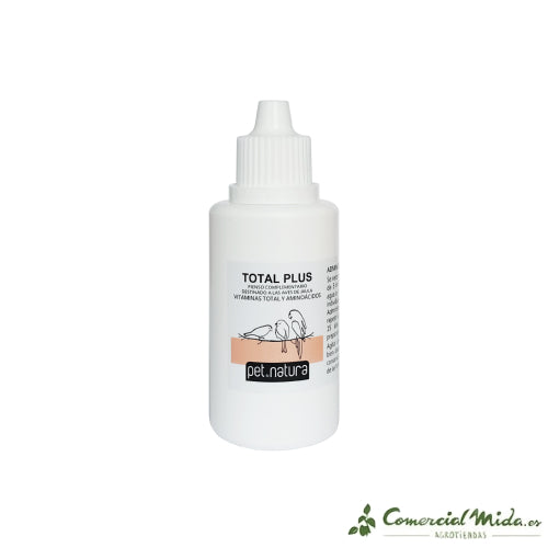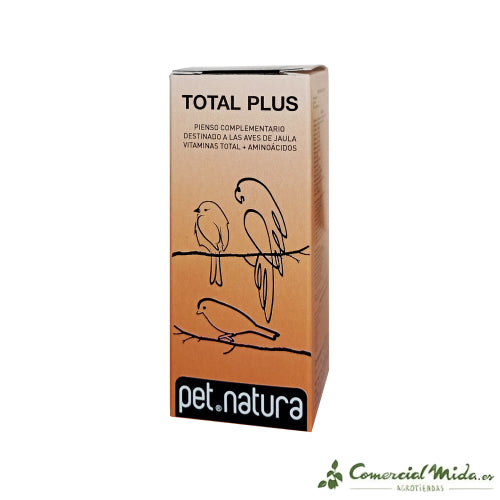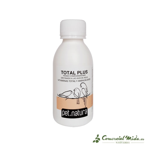 Il integratore alimentare Petnature Total Plus è un feed complementare che è stato progettato per uccelli in gabbia. Richiede un'amministrazione aggiuntiva vitamine e aminoacidi per gli uccelli. È sviluppato per amministrare nella fase di sviluppando Y aumento, dietro il convalescenza di processi infettivi, nei periodi di modificare, così come dentro stati di carenza e tempi di maggiore usura come il riproduzione.