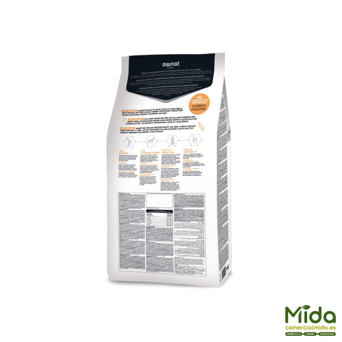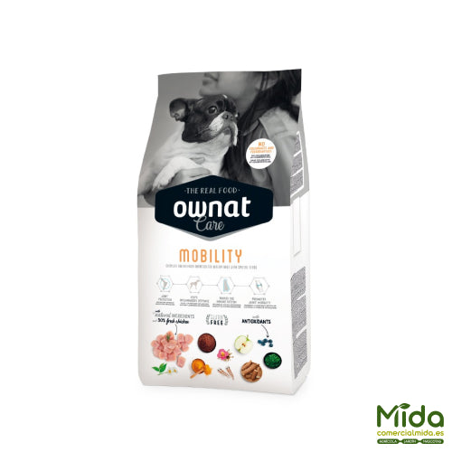 OWNAT Care Mobility es un alimento completo y equilibrado para perros (cachorros en crecimiento, adultos y seniors) orientado a articulaciones delicadas. Está formulado con calorías moderadas para ayudar a controlar el peso (factor crítico en salud articular) y con un paquete de ingredientes funcionales para apoyar movilidad, cartílago y respuesta inflamatoria. No es una dieta de prescripción; en patologías articulares diagnosticadas debe prevalecer el criterio veterinario.