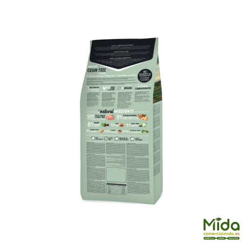 • Sin cereales (Grain Free): utiliza carbohidratos alternativos como patata y mandioca, de buena digestibilidad.