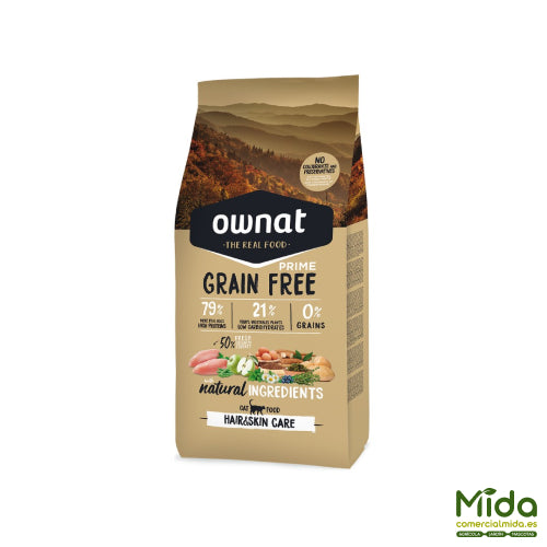 Pienso OWNAT Grain Free Prime Hair&Skin para el Cuidado del Pelo y Piel de Gatos