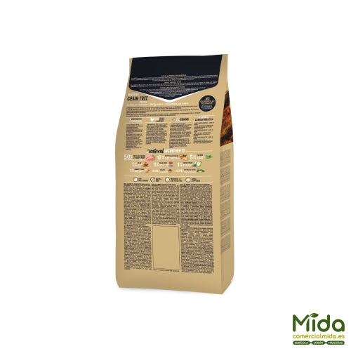• Sin cereales (Grain Free): carbohidratos alternativos como mandioca y patata, de buena tolerancia.