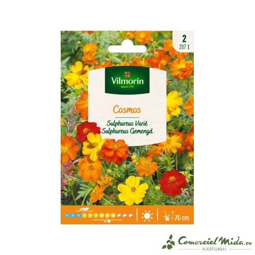 Las mejores semillas de Flores Altas de Vilmorin para cultivar Cosmos Azufrado Variado.